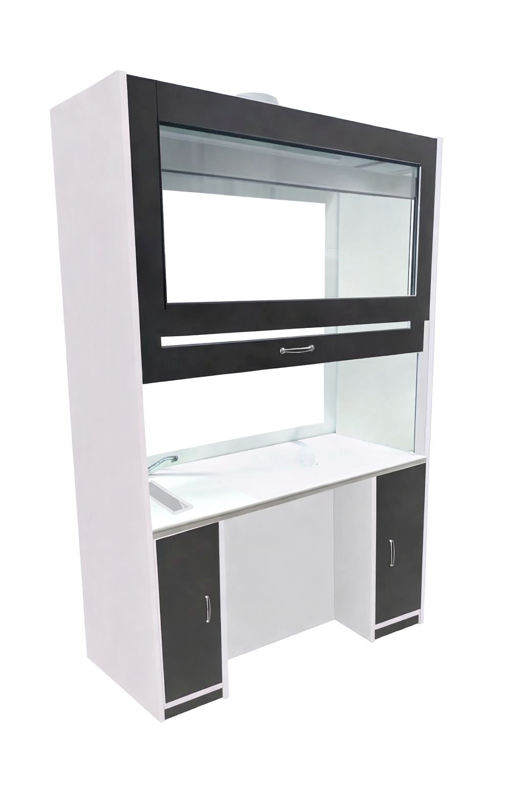 W górnej komorze zamocowana jest przesuwana okiennica podnoszona za pomocą systemu „Fennel”. Pozwala on na ustawienie okiennicy (góra-dół) w dowolnym położeniu. Wentylator z płytą montażową stanowi wyodrębnioną część wyciągu do montażu na otworze kominowym. W standardzie wentylator kanałowy o mocy 350-500 m3/h dwubiegowy. Instalacja wyciągowa wykonana jest z polistyrenu w wersji podstawowej. Króciec wyciągowy na suficie fi 150mm. Dygestorium chemiczne Pro-III posiada system wentylacji wywiewny. Całość na nośniku płyty laminowanej. Nóżki regulacyjne niewidoczne z zewnątrz, umożliwiają wypoziomowanie urządzenia. W dygestorium modern przody wykonane są w zmienionym kolorze, w standardzie grafitowy. Inne kolory możliwe do wykonania na specjalne zamówienie. Dodatkowo dygestorium komfort posiada miejsce na nogi, co umożliwia wygodną pracę przy dygestorium w pozycji siedzącej. Kolor bazowy dostępny w dwóch wersjach: biały, popiel.