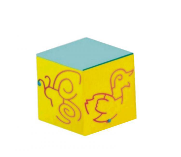Jest tablicą przeznaczoną do ćwiczeń manipulacyjnych i doskonalenia koordynacji wzrokowo-ruchowej u dzieci. Dziecko może przesuwać kolorowy krążek, ćwicząc sprawność nadgarstka i dłoni. Kostka składa się z 4 ścianek manipulacyjnych, żółw, kaczka, motyl, ślimak. Górna część jest otwierana. Może służyć do przechowywania rzeczy, lub jako stolik do zabaw. Kostka wykonana jest z płyty mdf 18 mm.