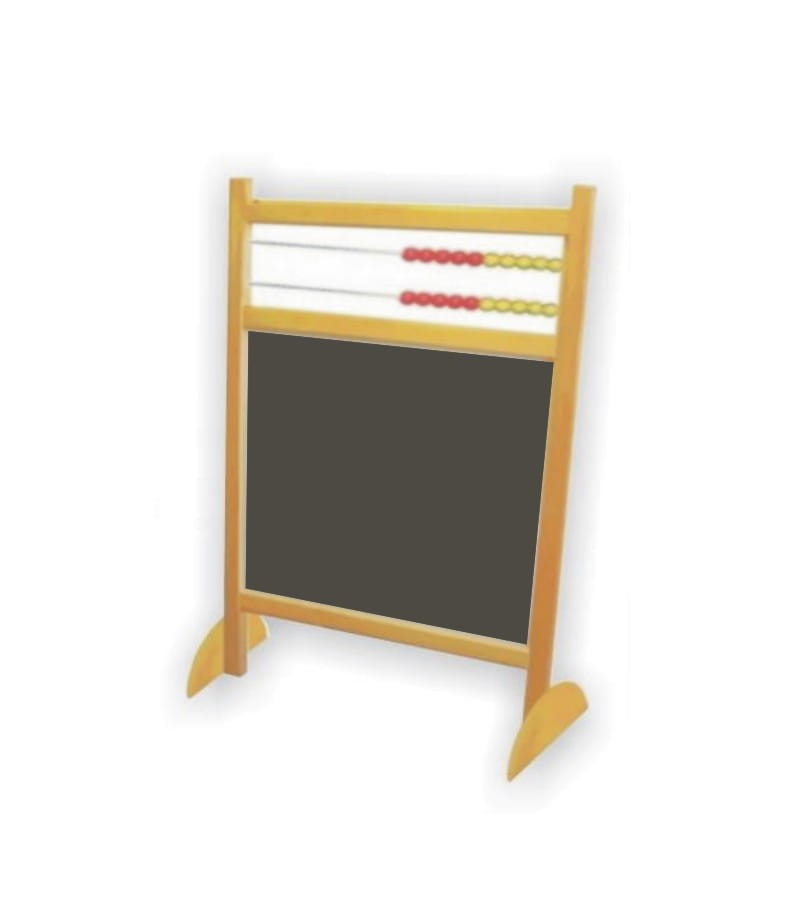 Liczydło demonstracyjne typu B z tablicą służy jako tablica do pisania pisakiem sucho-ścieralnym, lub do pisania kredą. Tablica jest dwustronna z możliwością dowolnej konfiguracji. Powyżej tablicy znajduje się liczyło w dwóch rzędach, na których znajdują się kulki drewniane żółto-czerwone o średnicy 34 mm