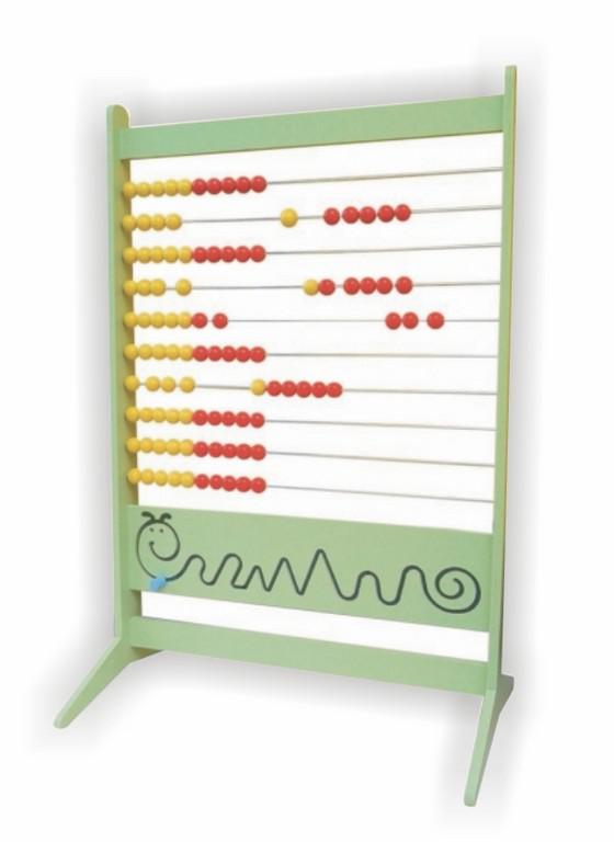 Wykonane jako ze sklejki 18 mm, malowanej w kolorze pastelowym lub lakierowanej. Na prętach w standardzie umieszczone są żółto-czerwone kulki drewniane pełne o średnicy 34 mm. W dolnej części umieszczona jest ścianka manipulacyjna w postaci gąsienicy. Każda część liczydła jest w pełni demontowalna za pomocą klucza typu imbus. Liczydło można w wygodny sposób zdemontować i schować do kartonu. W zestawie klucz montażowy.