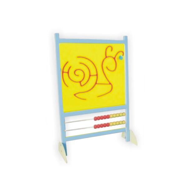 Pojedyncza ścianka manipulacyjna stacjonarna. Jest tablicą przeznaczoną do ćwiczeń manipulacyjnych i doskonalenia koordynacji wzrokowo-ruchowej u dzieci. Dziecko może przesuwać kolorowy krążek, ćwicząc sprawność nadgarstka i dłoni. Pod spodem ścianki manipulacyjnej znajduje się liczydło z dwoma prętami i kulkami pełnymi o średnicy 34mm umożliwiające naukę liczenia oraz realizacji zadań matematycznych w przedszkolach i szkole podstawowej.