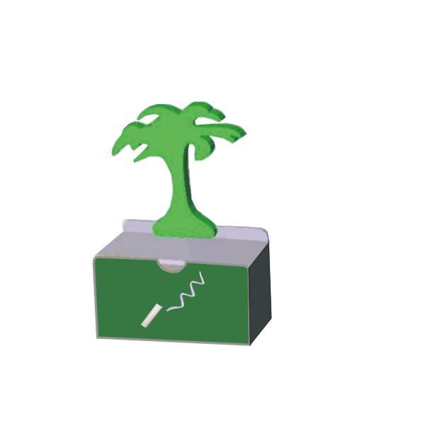 Segmenty wykonany z płyty meblowej 18 mm w kolorze popielatym. Szuflada standardowo wykonana w kolorze białym do pisania kredą. W części środkowej szuflada wysuwana. Palma wykonany z płyty mdf, malowany w pastelowych kolorach, wielkości ok 600 mm, uatrakcyjnia wygląd wyrobu.
