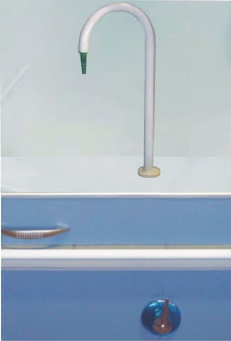 Standardowo stolik laboratoryjny wyposażony jest w baterię umywalkową. Zawór regulacji wody na panelu
