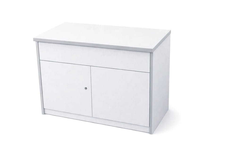 Postumenty dolny standard to podstawowa szafka, na której umieszcza się dygestorium nastołowe. Wykonany na konstrukcji płyty laminowanej 18mm, wyposażona w dwoje drzwiczek zamykane na klucz, nóżki regulowane. Taki postument zapewnia stabilne i bezpieczne ustawienie dygestorium nastołowego. Postument dolny standard jest kompatybilny z dygestoriami nastołowymi firmy Pro-Cezas.