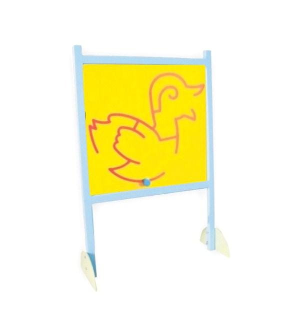 Pojedyncza ścianka manipulacyjna kaczka stacjonarna. Jest tablicą przeznaczoną do ćwiczeń manipulacyjnych i doskonalenia koordynacji wzrokowo-ruchowej u dzieci. Dziecko może przesuwać kolorowy krążek, ćwicząc sprawność nadgarstka i dłoni.