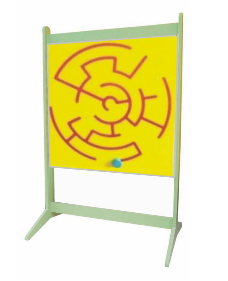 Pojedyncza ścianka manipulacyjna labirynt stacjonarna. Jest tablicą przeznaczoną do ćwiczeń manipulacyjnych i doskonalenia koordynacji wzrokowo-ruchowej u dzieci. Dziecko może przesuwać kolorowy krążek, ćwicząc sprawność nadgarstka i dłoni. Ściankę składaną można złożyć, oraz ponowanie złożyć za pomocą zestawu montażowego.