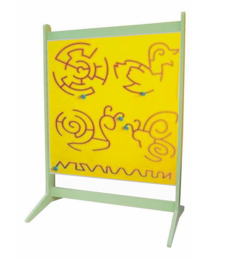Ścianka manipulacyjna jest tablicą przeznaczoną do ćwiczeń manipulacyjnych i doskonalenia koordynacji wzrokowo-ruchowej u dzieci. Ściankę wyposażono w 5 wzorów po których dziecko może przesuwać kolorowy krążek, ćwicząc sprawność nadgarstka i dłoni. Ściankę składaną można złożyć, oraz ponowanie złożyć za pomocą zestawu montażowego