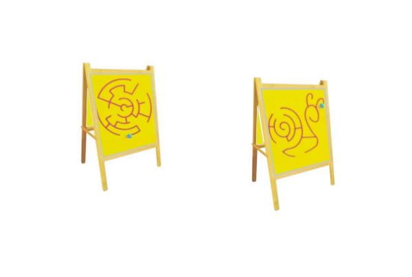 Podwójna ścianka manipulacyjna żółw oraz labirynt stacjonarna. Jest tablicą przeznaczoną do ćwiczeń manipulacyjnych i doskonalenia koordynacji wzrokowo-ruchowej u dzieci. Dziecko może przesuwać kolorowy krążek, ćwicząc sprawność nadgarstka i dłoni. Ścianka sztalugowa składa się z dwóch rozkładanych części.