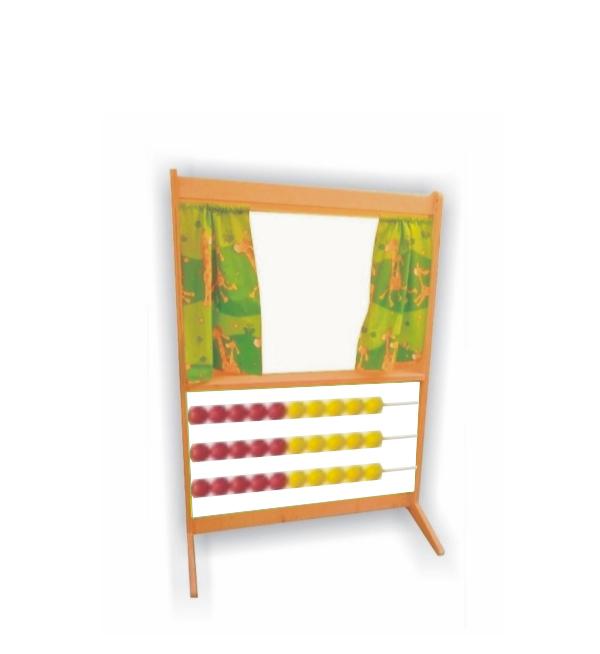Scenka umożliwia zabawy w sklep, dom, hotel, teatrzyki. Poniżej scenki znajduje się wbudowane liczydło z czterema pretami. Kulki o średnicy 60mm puste.Teatrzyk jest demontowalny, można go złyżyć za pomocą klucza imbusowego dołączonego w zestawie.