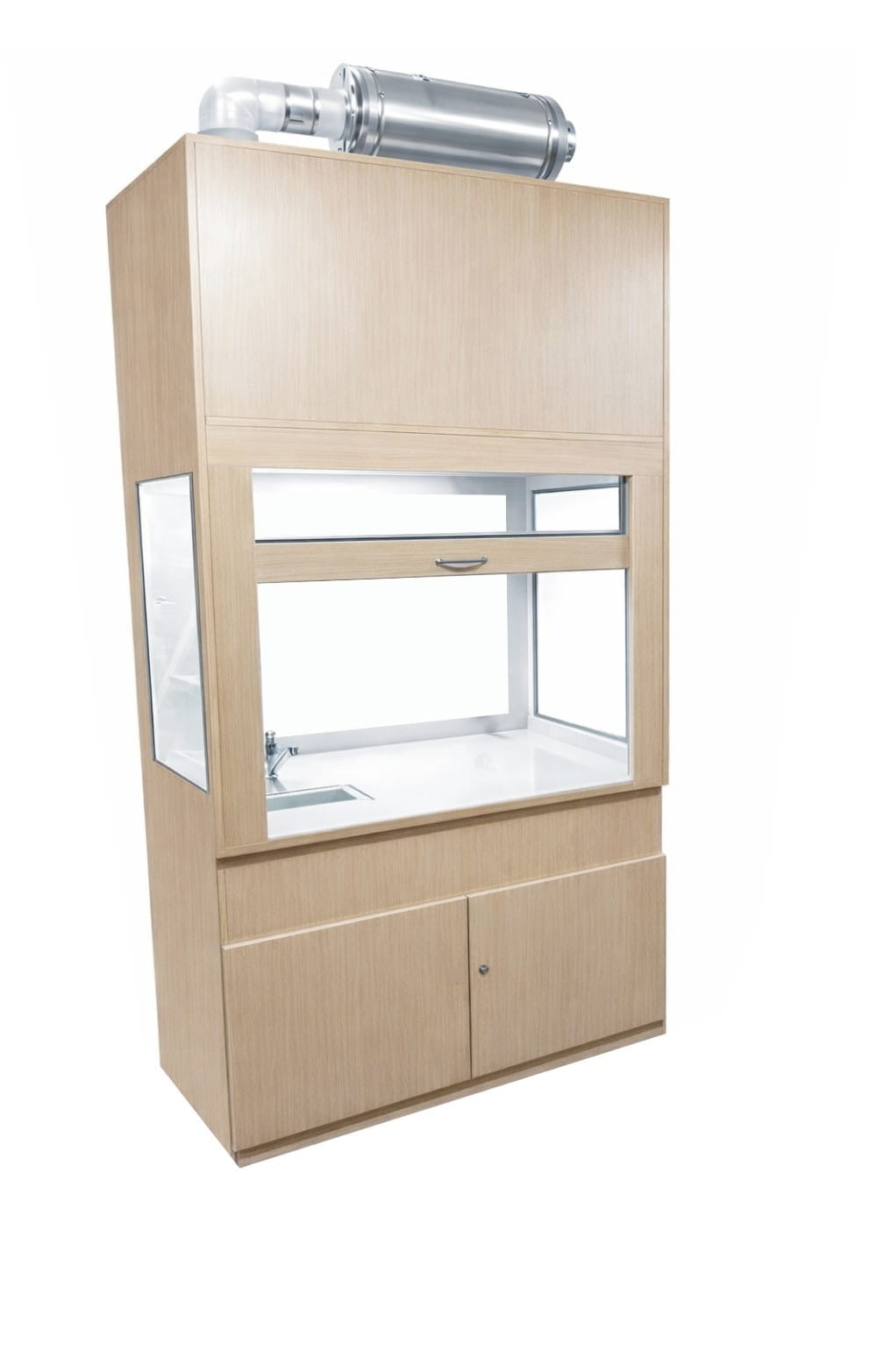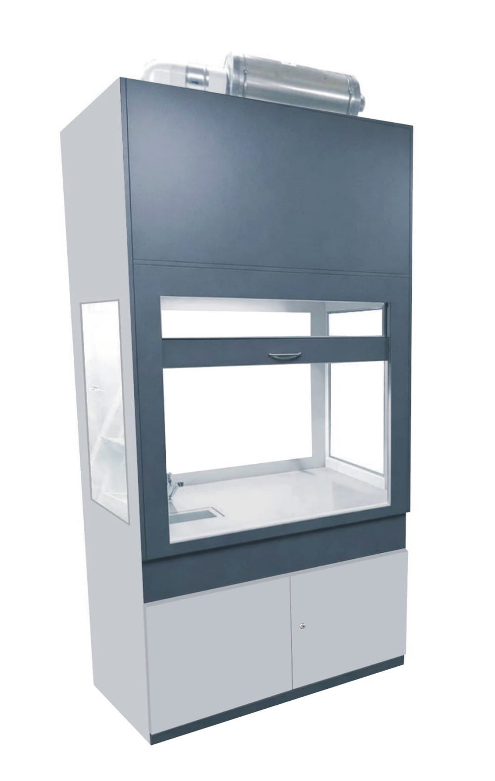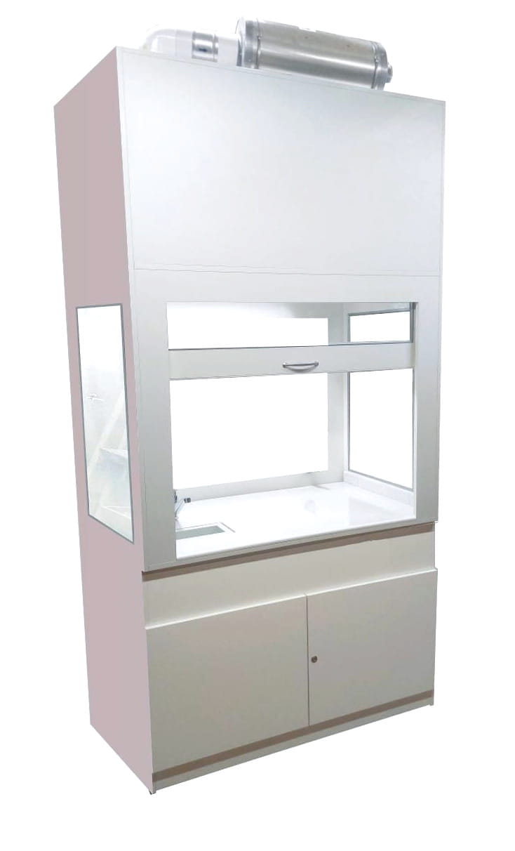 W górnej komorze zamocowana jest przesuwana okiennica podnoszona za pomocą systemu „Fennel”. Pozwala on na ustawienie okiennicy (góra-dół) w dowolnym położeniu. Całość na nośniku laminatu. Nóżki regulowane umożliwiają wypoziomowanie urządzenia. Dygestorium jest dostępne w trzech kolorach: biały, buk, popiel. Dodatkowe kolory na specjalne zamówienie.
