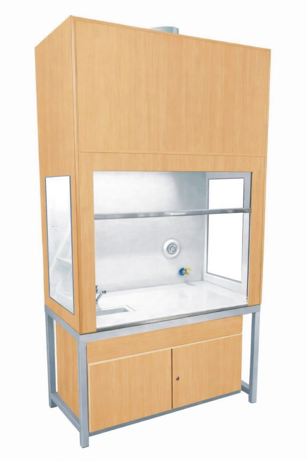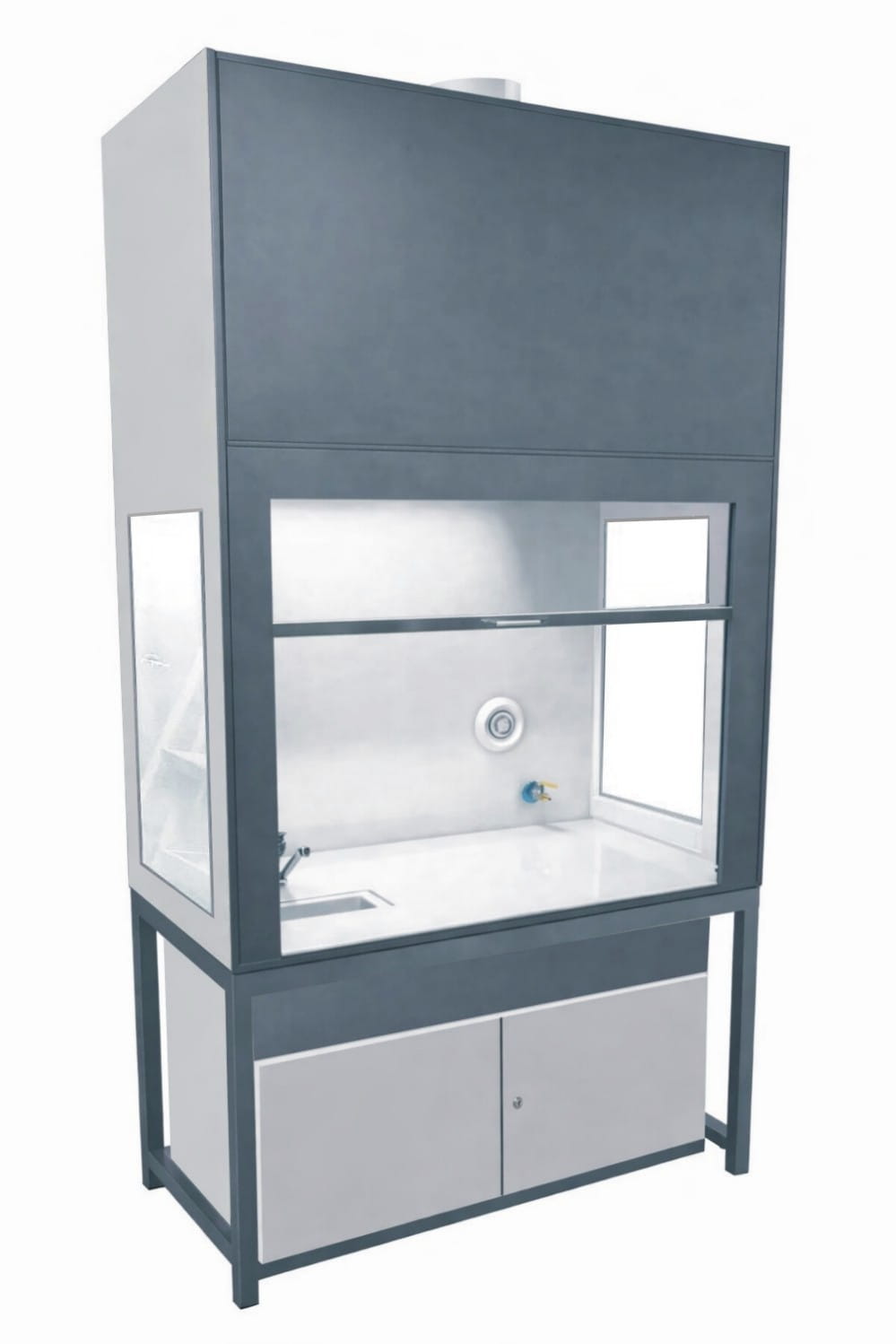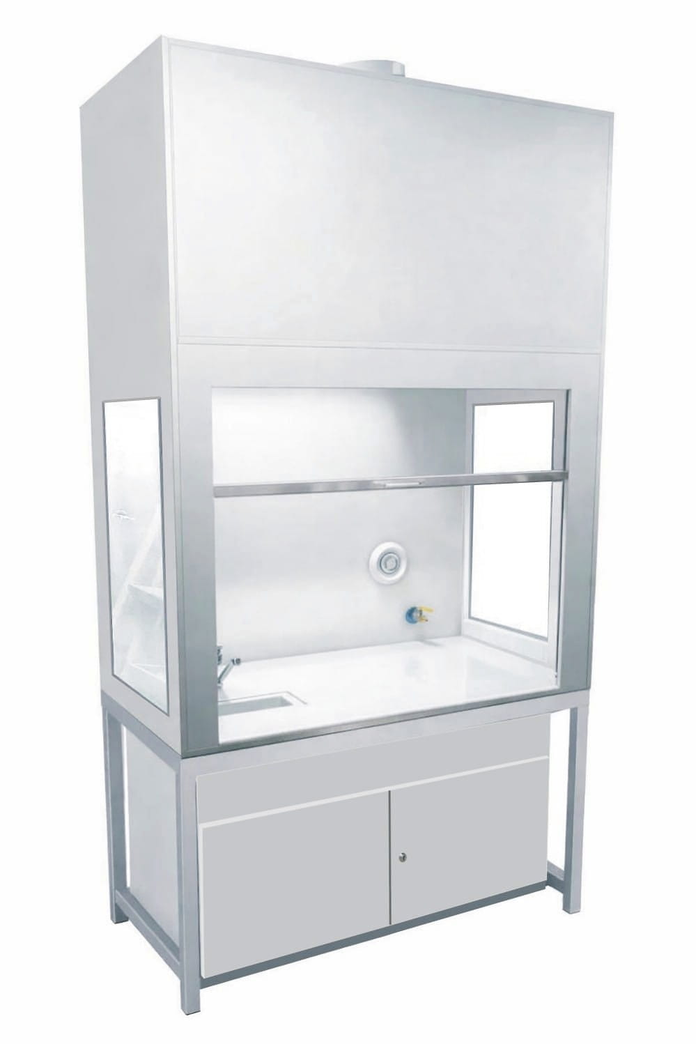 W komorze zamocowana jest przesuwana okiennica podnoszona za pomocą systemu „Fennel”. Pozwala on na ustawienie okiennicy (góra-dół) w dowolnym położeniu. Dygestorium w standardzie posiada wentylację wywiewną sufitową. Wentylator z płytą montażową stanowi wyodrębnioną część wyciągu do montażu na otworze kominowym. W standardzie wentylator kanałowy dwubiegowy o mocy 350-500m3//h. Króciec wylotowy wentylacji fi 150mm. Instalacja wyciągowa wykonana jest z polistyrenu w wersji podstawowej. Całość dolnej części dygestorium oparta na solidnym stelażu z profili metalowych o grubości 4 cm. Do stelaża przymocowana jest szafka z płyty laminowanej z otwieranymi drzwiczkami. Nóżki regulowane umożliwiają wypoziomowanie urządzenia. Dygestorium jest dostępne w trzech kolorach: biały, buk, popiel.
