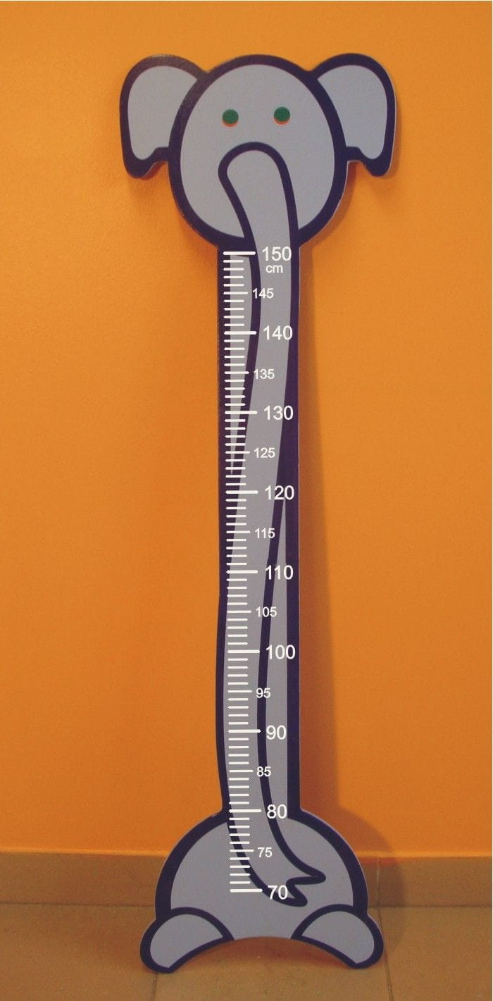 Miara wzrostu dziecka produkowana w dwóch wersjach 70-150 cm lub 100-180 cm, przeznaczona do mocowania na ścianie, służy do pomiaru wzrostu dzieci w przedszkolach, szkołach. Bajkowy wygląd zachęcaja do korzystania z wyrobu.