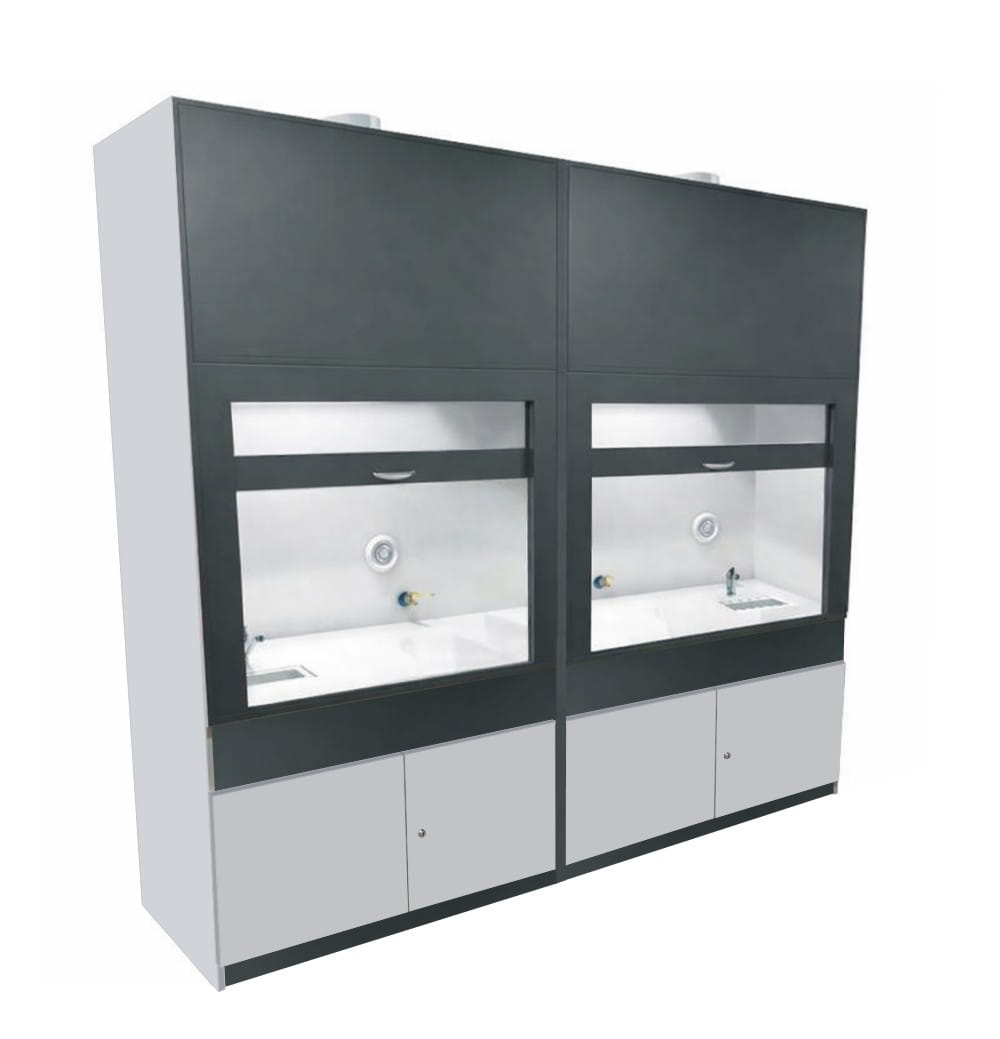 Dygestorium laboratoryjne dwukomorowe Pro-V typ A przeznaczone jest do realizacji doświadczeń w zakładach laboratoryjnych, doświadczalnych oraz szkołach. W wersji Pro V typu A ze wszystkich z trzech zabudowane jest materiałem chemio-odpornym, z przodu duża szyba zapewnia doskonałą widoczność, oraz wygodę podczas długotrwałej pracy. Dla bezpieczeństwa użytkowania szyba podczas podnoszenia chowa się w nadstawkę. Nadstawka pełni również rolę doświetlenia części roboczej dygestorium.