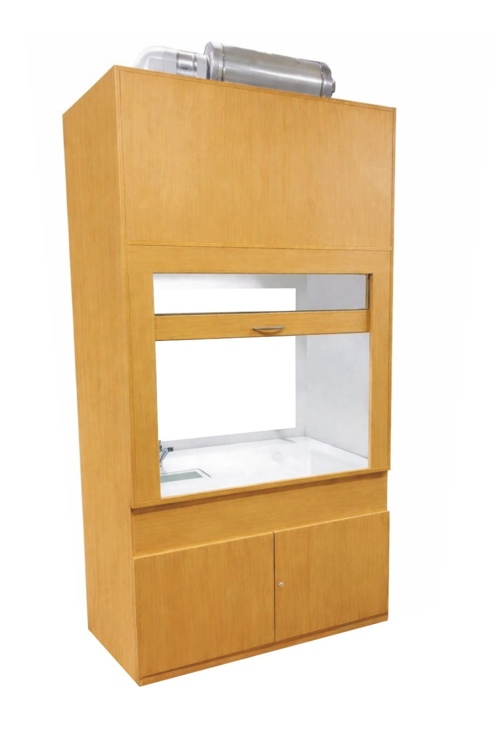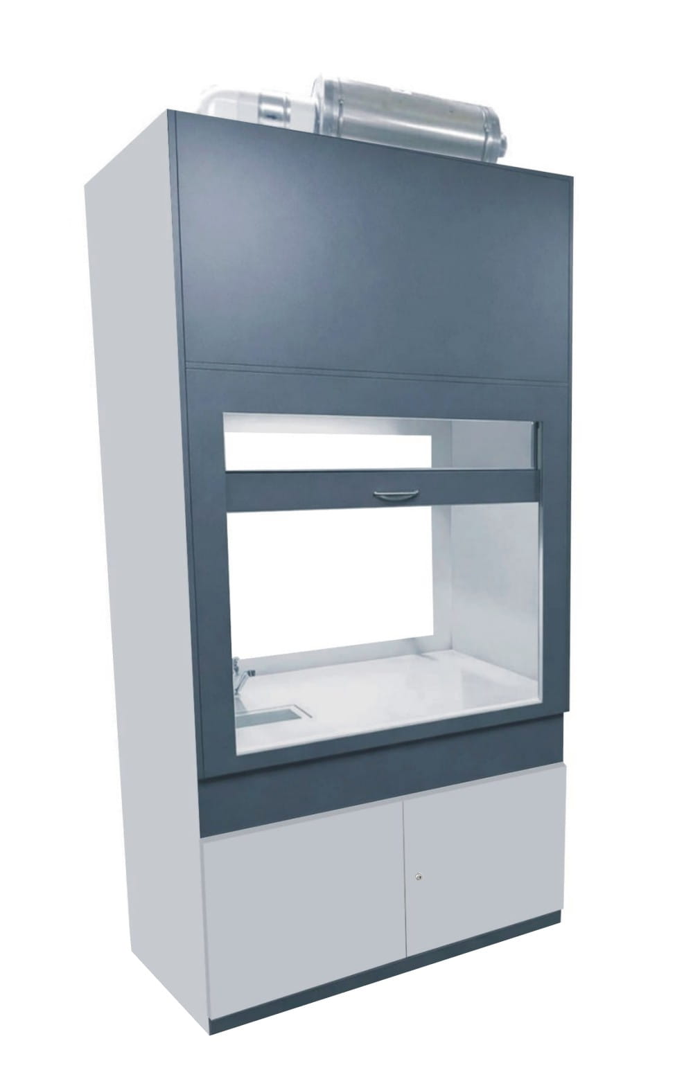 W górnej komorze zamocowana jest przesuwana okiennica podnoszona za pomocą systemu „Fennel”. Pozwala on na ustawienie okiennicy (góra-dół) w dowolnym położeniu. Całość na nośniku laminatu. Nóżki regulowane umożliwiają wypoziomowanie urządzenia. Dygestorium jest dostępne w trzech kolorach: biały, buk, popiel. Dodatkowe kolory na specjalne zamówienie. Dygestorium jest dostarczone w stanie złożonym w dwóch częściach. Montaż polega na hydraulicznym podłączeniu wody.