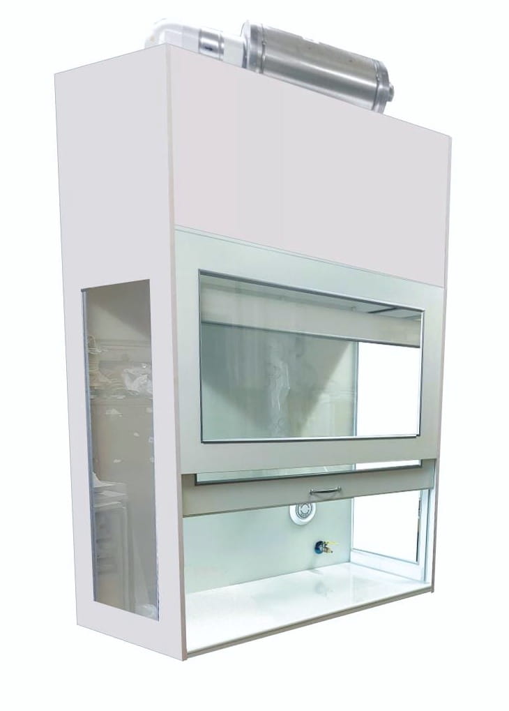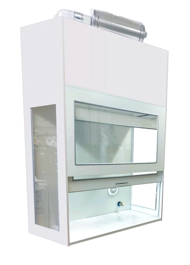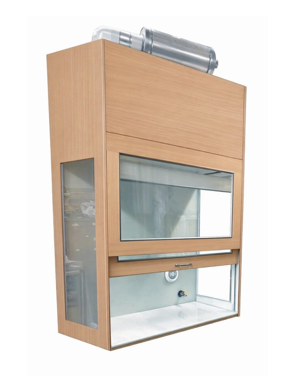 Komora manipulacyjna oszklona szybami hartowanymi, wyłożona płytą polipropylenową odporną na kwasy i zasady do wysokości sufitu. Wyposażona jest w zawór gazowy, anemostat nawiewny, blat wykonany w standardzie z litej ceramiki technicznej, wyciąg z filtrem wstępnym węgla aktywnego sterowany zdalnie za pomocą pilota o wydajności 800m3/h, filtr węglowy walcowy końcowy. Dygestorium wyposażone jest w system trzech filtrów węglowych (filtry węglowe wstępne, filtr mechaniczny EU3 oraz filtr cylindryczny węglowy końcowy). W komorze zamocowana jest przesuwana okiennica podnoszona za pomocą systemu „Fennel”. Pozwala on na ustawienie okiennicy (góra-dół) w dowolnym położeniu. Całość na nośniku laminatu. W dygestorium filtracyjnym wentylator jest zintegrowany i wbudowany w górną nadstawkę. W dygestorium filtracyjnym wentylator jest zintegrowany i wbudowany w górną nadstawkę. Dygestorium jest dostępne w trzech kolorach: biały, buk, popiel. Dodatkowe kolory na specjalne zamówienie.