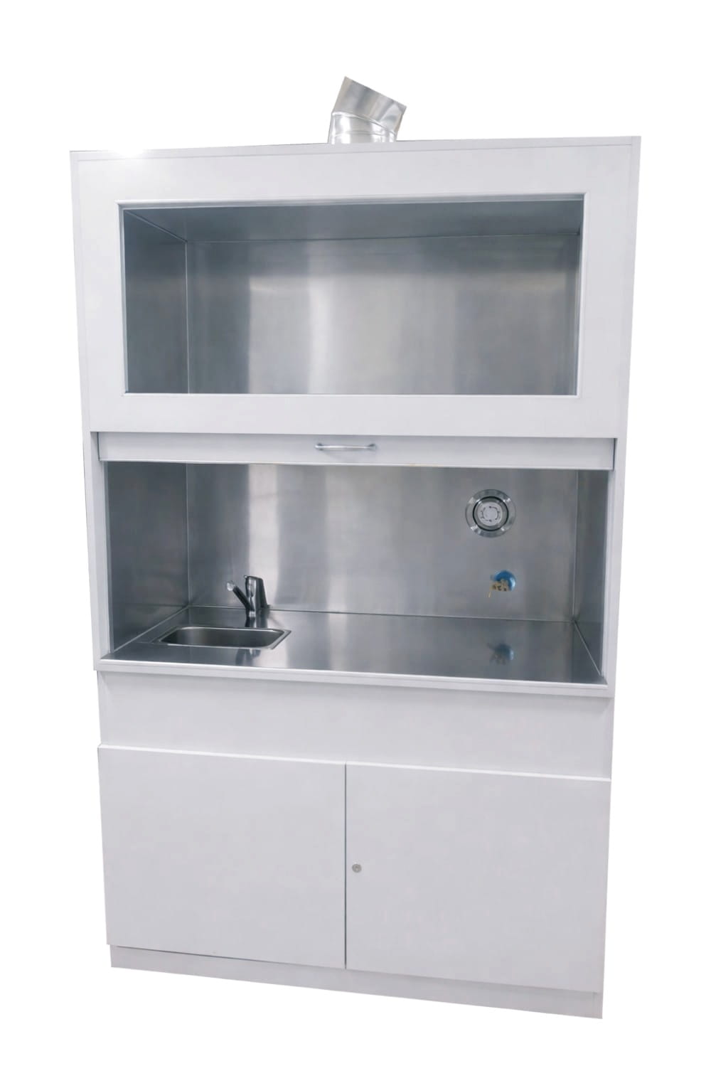 -dolnej: szafki dwudrzwiowej z zamontowanym syfonem. Nóżki regulowane umożliwiają wypoziomowanie dygestorium.