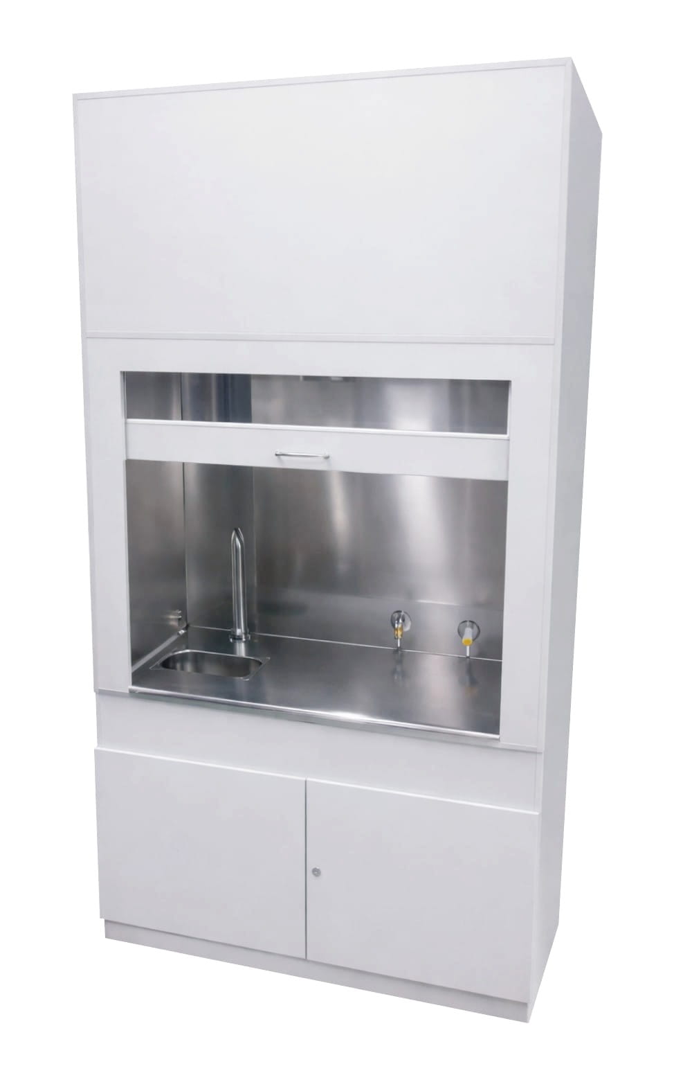 -dolnej: szafki dwudrzwiowej z zamontowanym syfonem. Nóżki regulowane umożliwiają wypoziomowanie dygestorium.