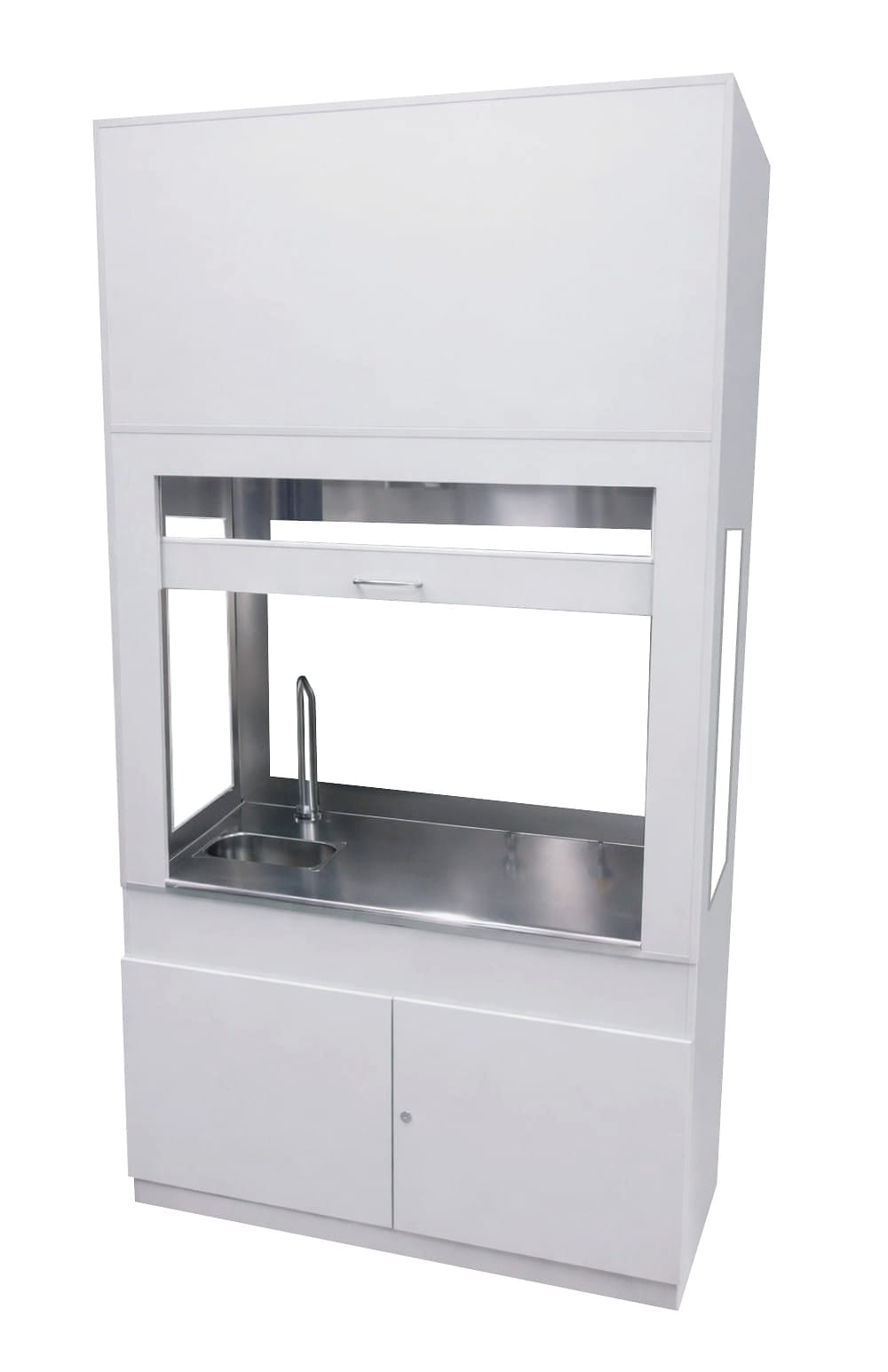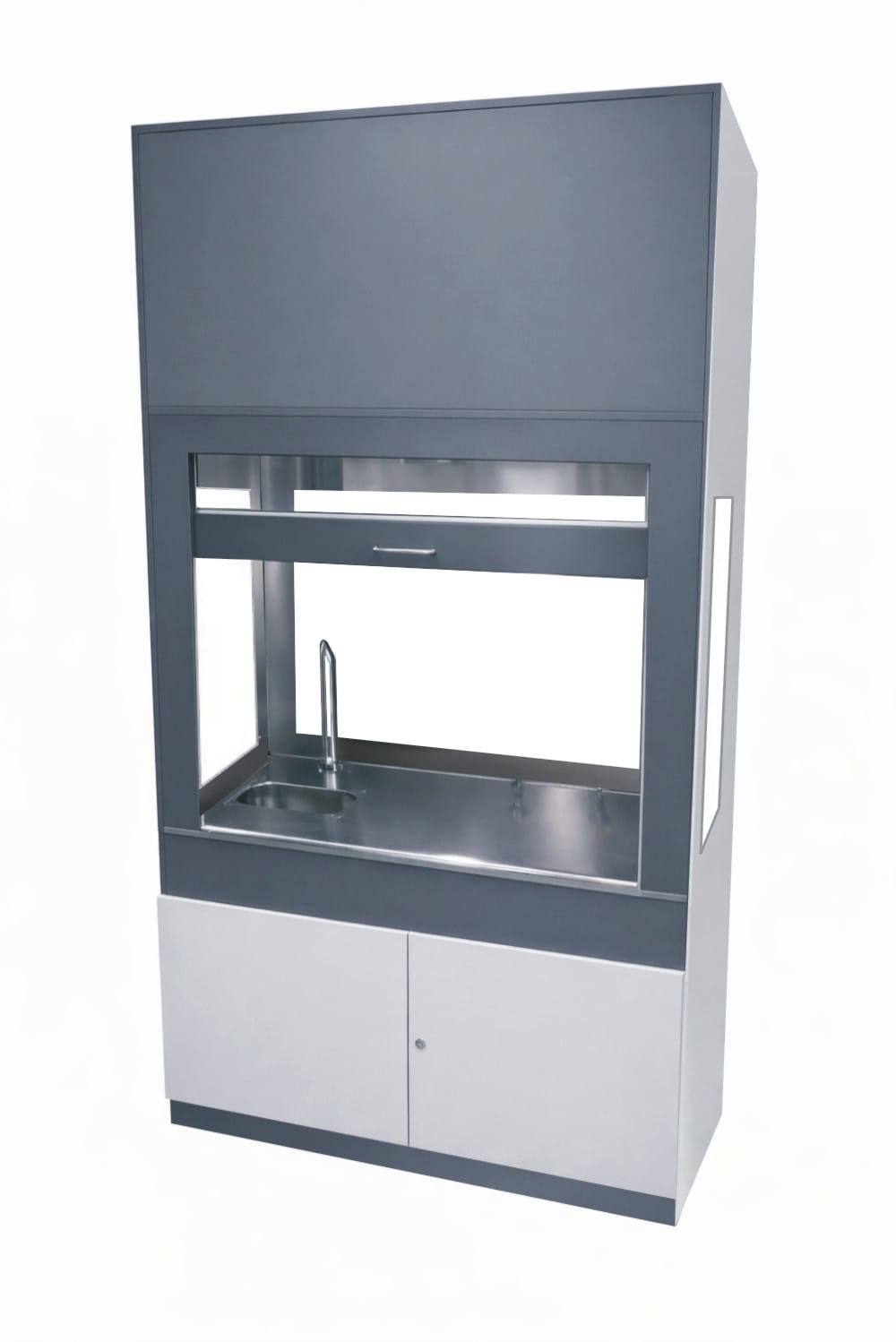 -dolnej: szafki dwudrzwiowej z zamontowanym syfonem, regulatorem instalacji wyciągowej. Nóżki regulowane umożliwiają wypoziomowanie dygestorium.